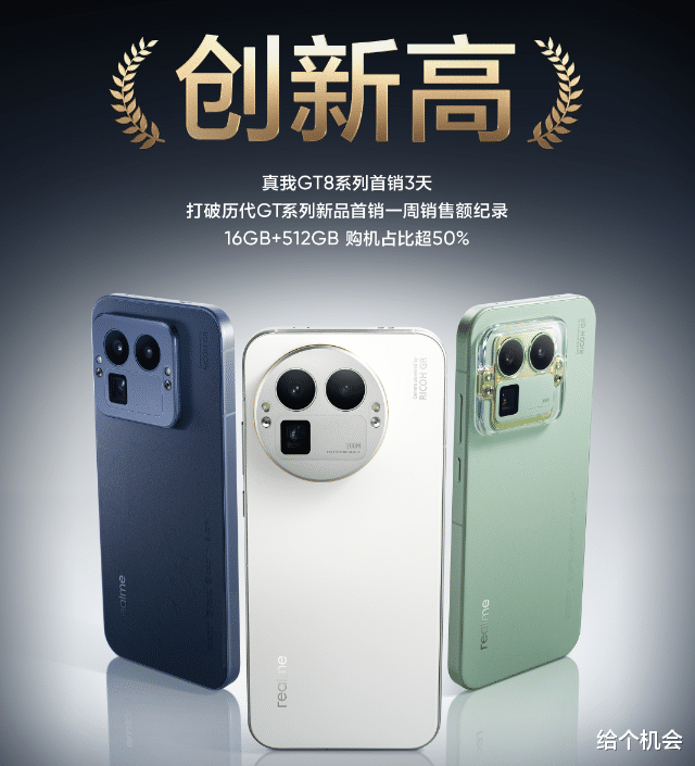 最亮眼的还是真我GT 8系列,据官方发布博文称,本系列首销3天打破历代GT系列新品首销一周销售额纪录,这数据不仅是说明卖的更好,还说明大家也认可了真我冲击高端,因为这次价格上涨直接对标旗舰,pro版直接提升到3999元起,而16G+512G内存的价格要4699元,但数据显示16G+512G大内存版本占比超50%,看得出来这次真我冲高成功了。